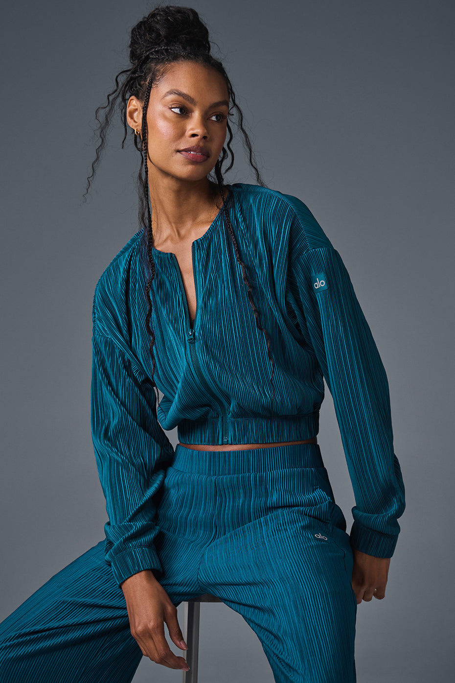 Cropped Micro Plisse Jacket - Eclipse Blue